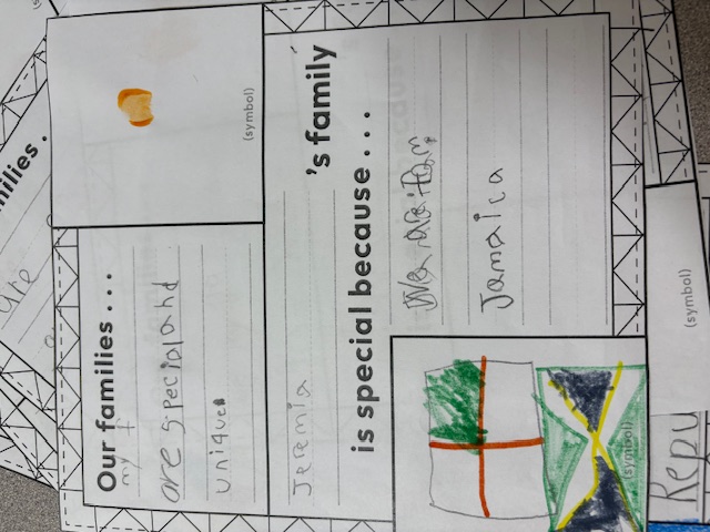 This is a family quilt my first grade scholars made about why their families are special. We also included each students fingerprint to show they are unique.
