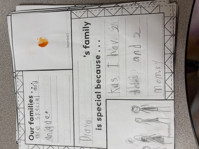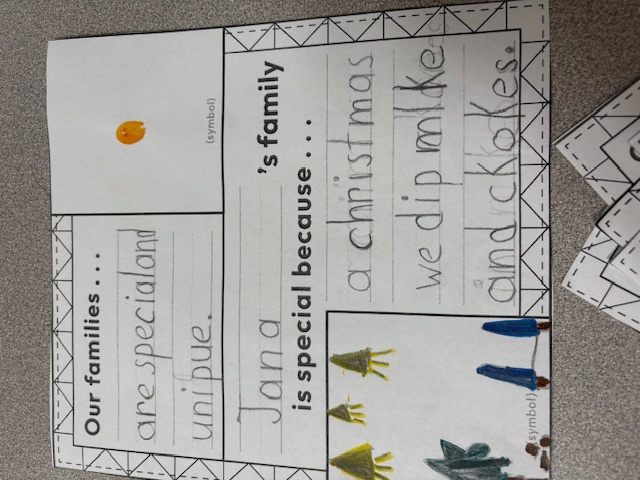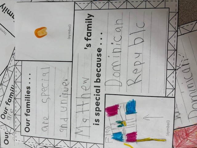 Our class wrote and drew about their favorite foods they eat for special celebrations. We were joined by our Big Buddy Volunteers from Clearwater Retirement Community who shared some of their traditions too! Our class loves listening to their perspectives and stories, and the volunteers enjoyed helping students create their quilt square. We posted everyone's square on our wall as we compared and contrasted everyone's unique traditions.