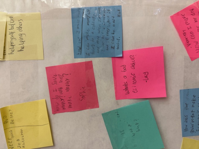 This is my third year using InquirEd and it always amazes me just how much 9 and 10 year olds already know about economics. For example, they might not call their economic choices "opportunity cost," but they are well aware that by making a choice, they are giving up something else.