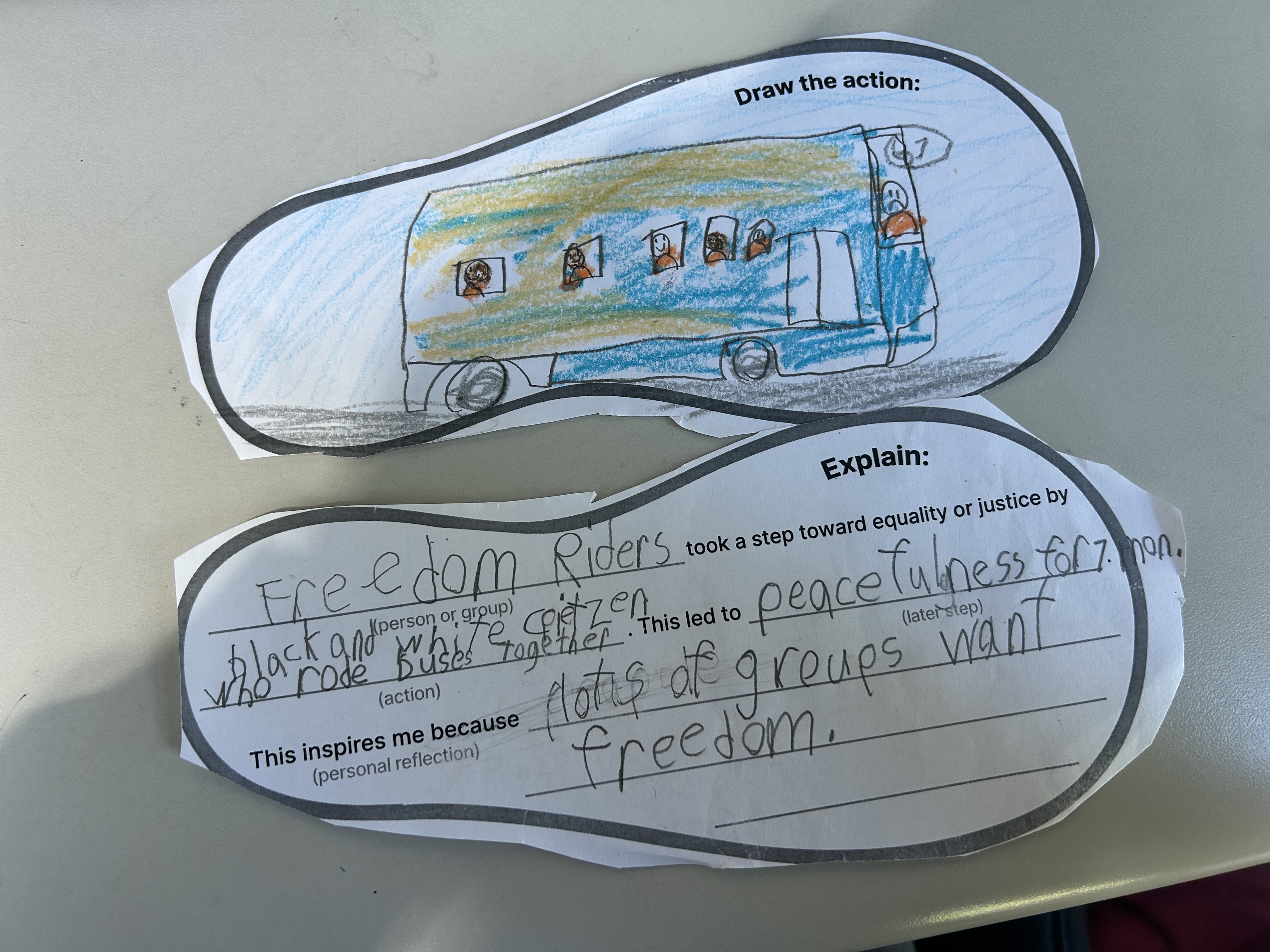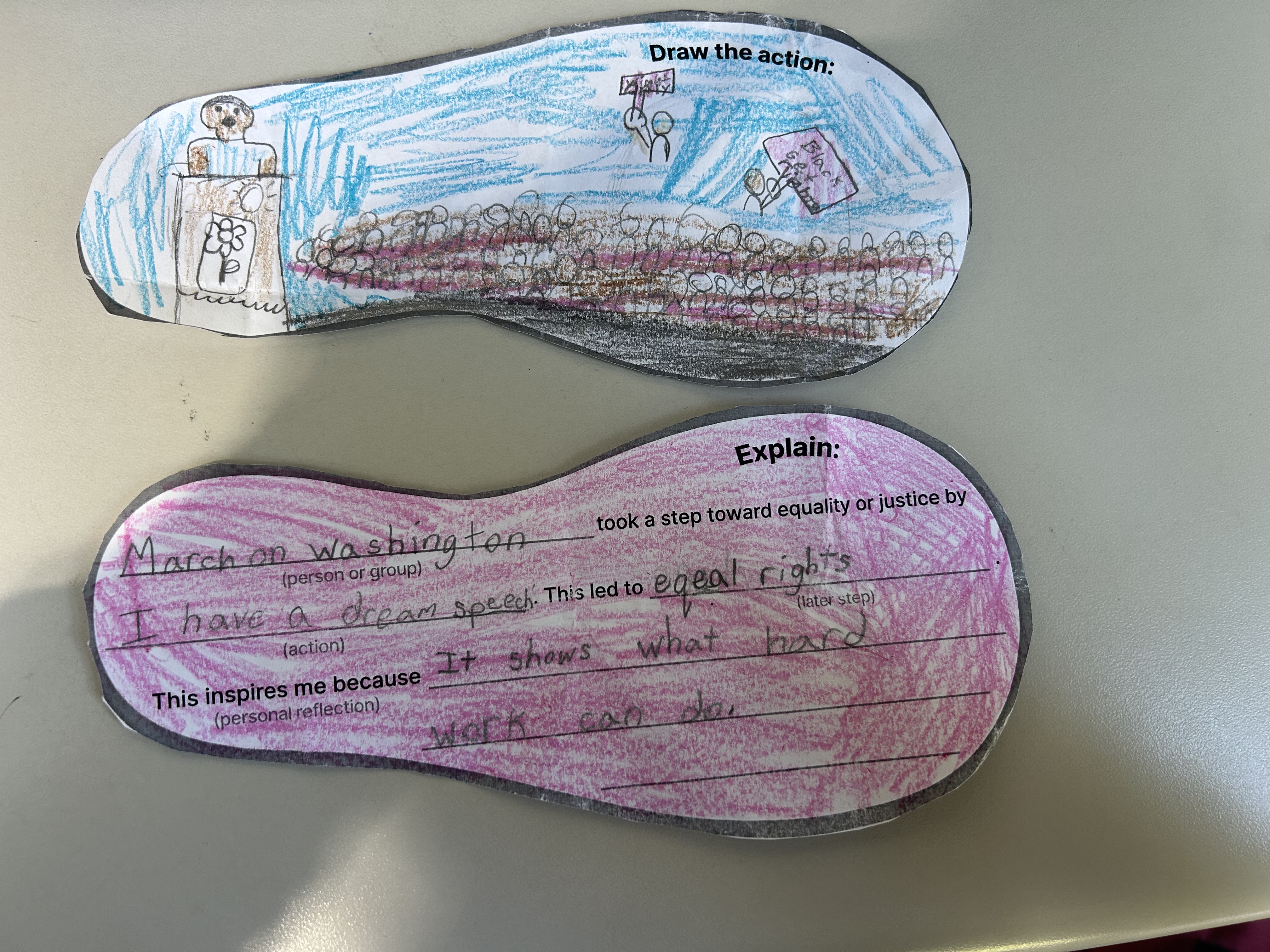 In this activity, students completed the Changemakers Footsteps handout as part of the 3rd-grade 20th-century Civil Rights Movement unit. The students have been highly engaged and have had thoughtful discussions throughout the lessons. They are beginning to make connections between key events and recognize the patterns of unfairness that people faced during this time. It’s been inspiring to see their empathy and understanding grow as they explore how individuals worked together to create change.