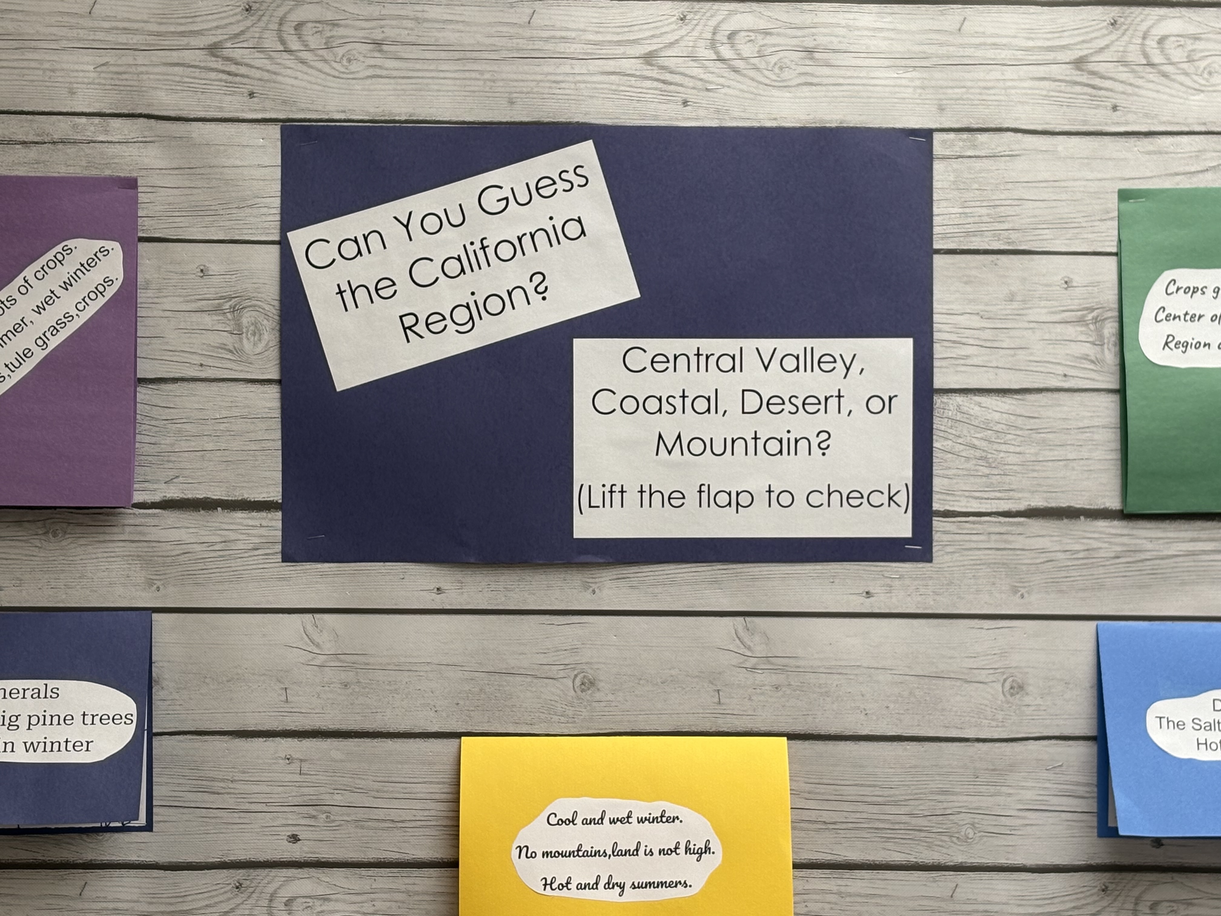 Our Inquiry Unit - 4th Grade California: The Diverse Geography of California After student groups studied a particular region of California, they used their annotated articles to pull ideas/descriptive words to help them write a haiku about that region. We created an interactive bulletin board where students passing by in the hallway could guess what region was being described in the haiku and then check their answer by flipping the card. Students also created illustrations to go along with their answer.