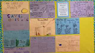 Fourth graders created a snack business based on what they learned about economic choices. Students managed the business and donated profits to the St. Hubert's Animal Welfare Center. The brochures they independently created were distributed across the school to promote the business.