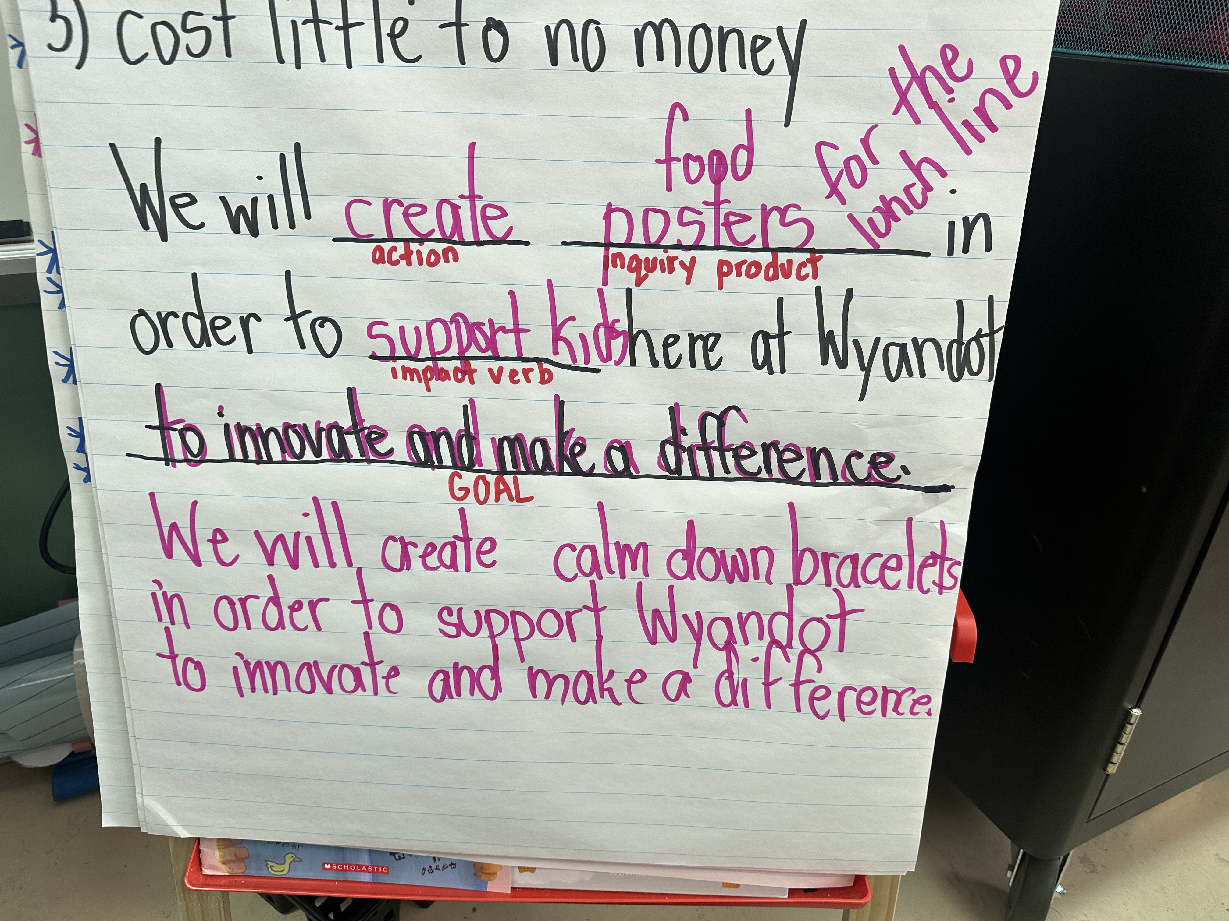 Half of my class chose to create “calm down bracelets.” They interviewed our school counselor about good strategies and made templates for their bracelets. They shared about their bracelets on announcements and made a green screen video. They packaged and delivered bracelets to each class in our building and gave our school counselor a supply as well. Classrooms added them to their calm down centers in their classrooms.