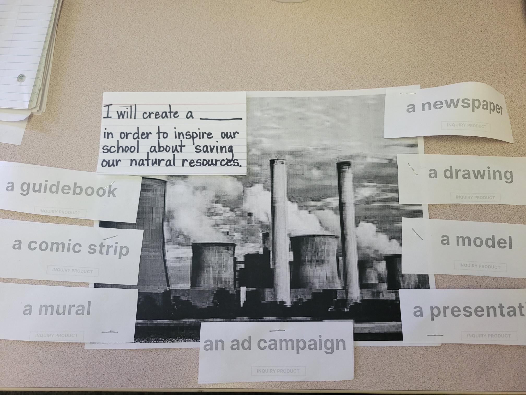 Students created a variety of written products in order to inspire the school about saving natural resources.