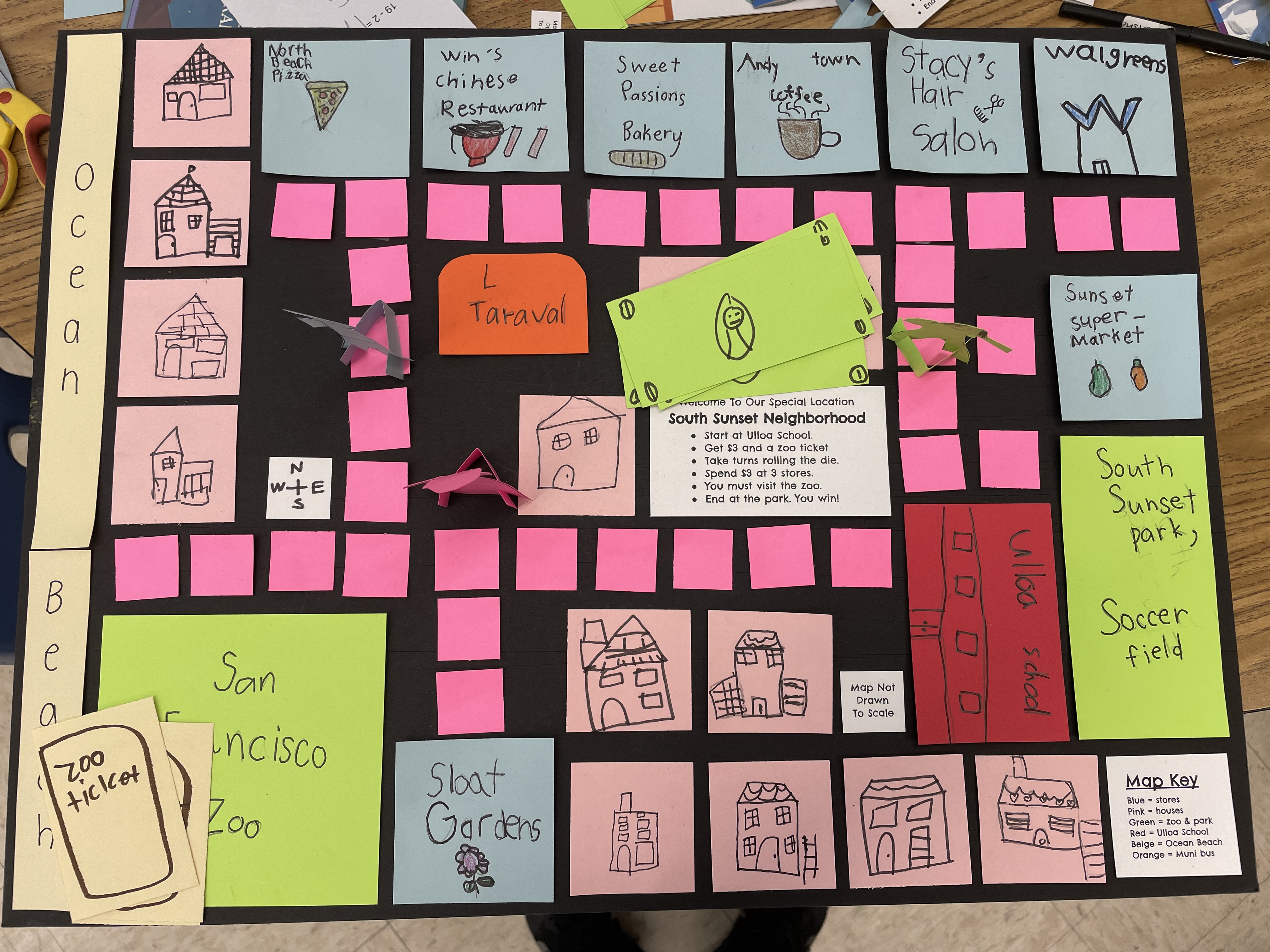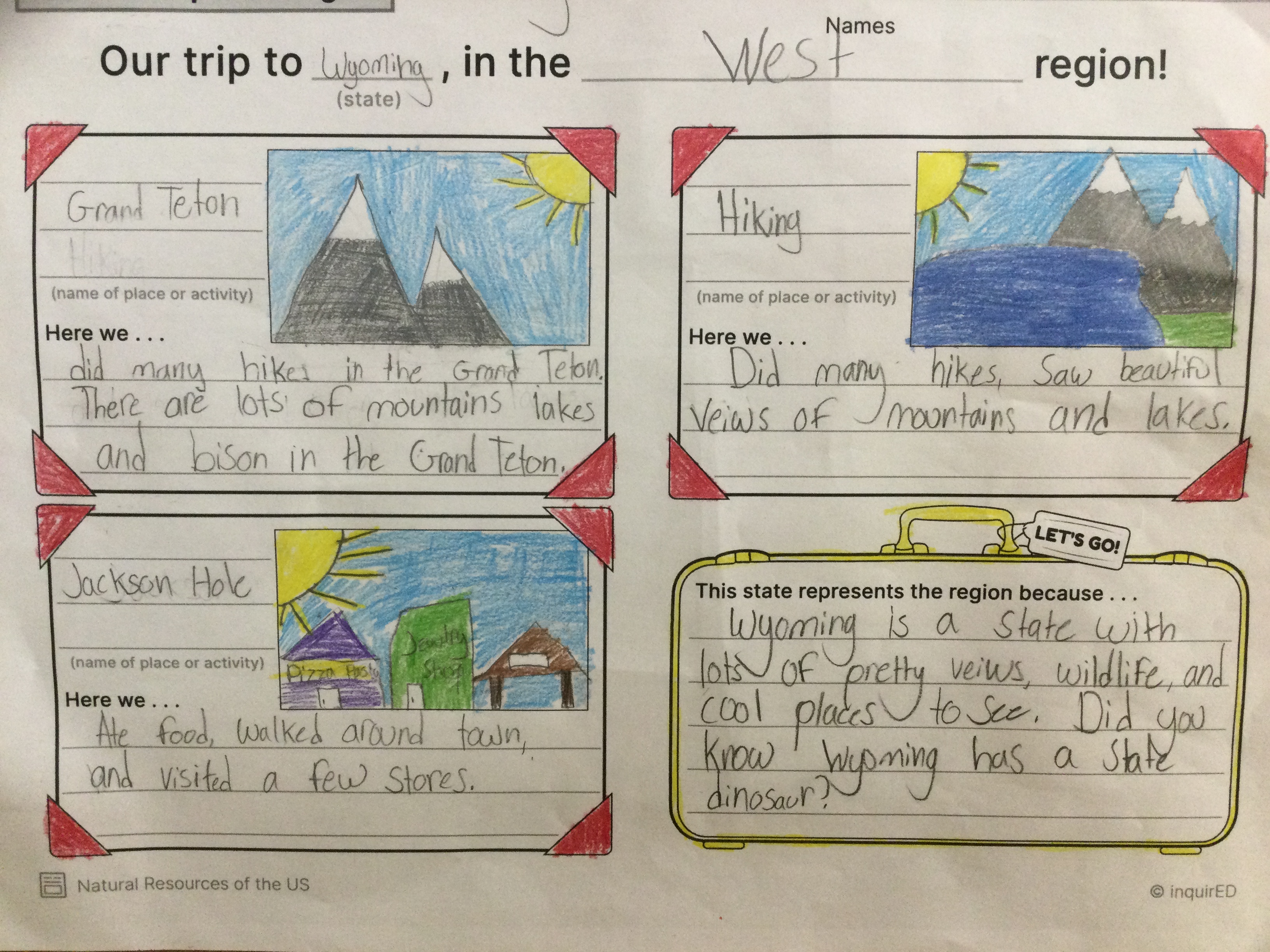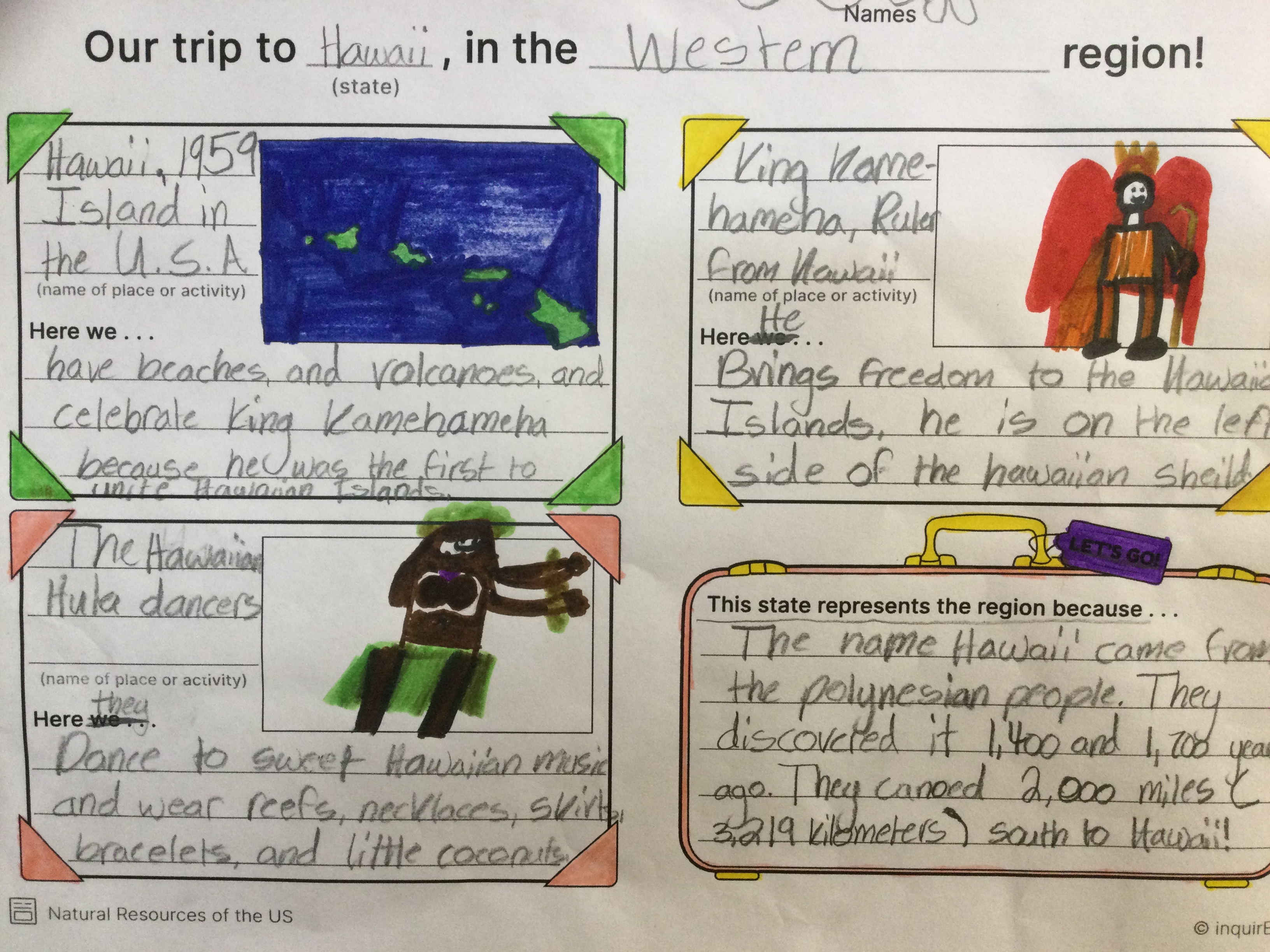 Our Special Location The students used their collaboration skills to create a school mural that had symbols that represented our community and our special location. Students investigate how location, natural features, and climate shape daily life, and how goods and services are produced to address community needs and wants.