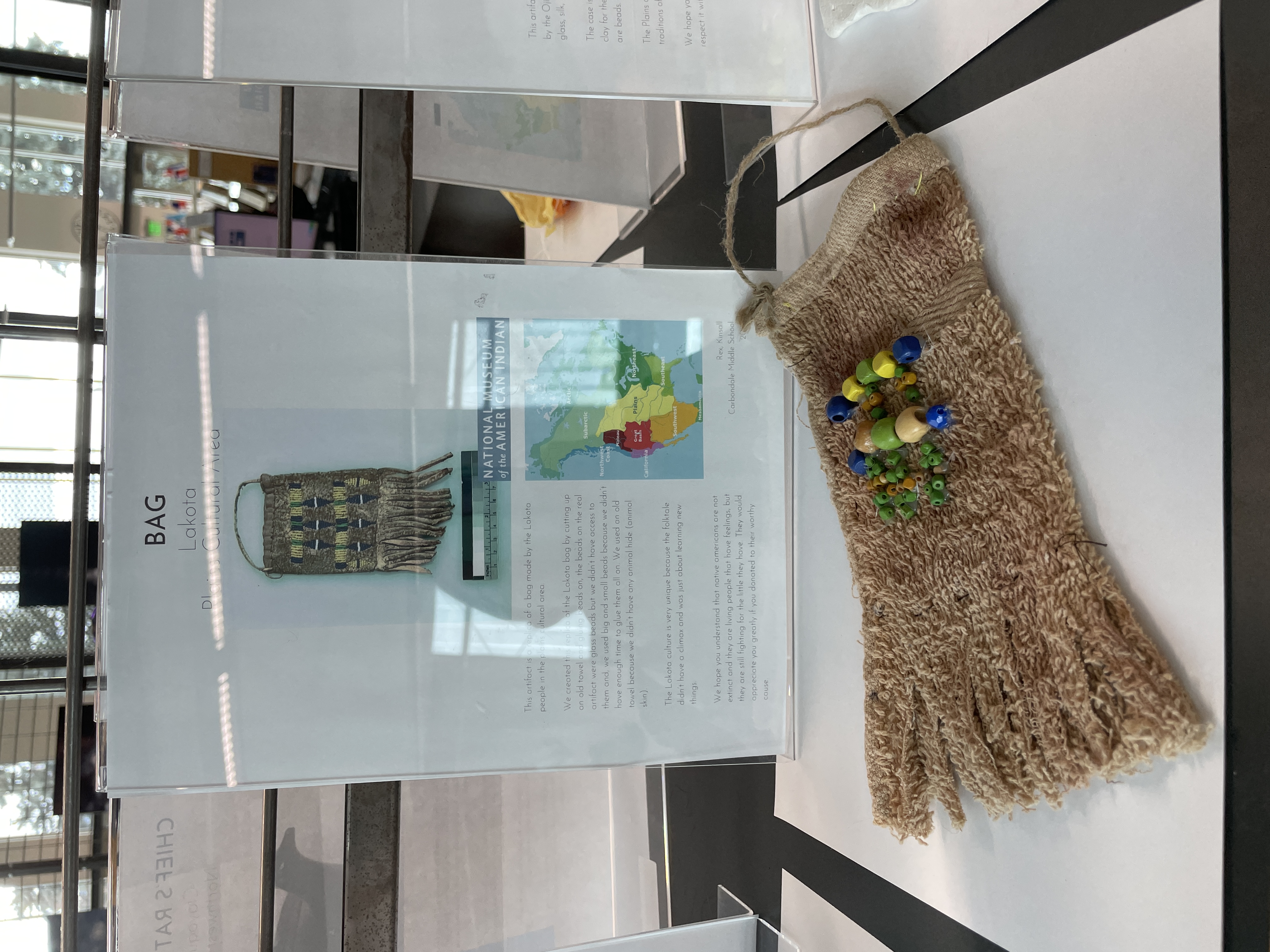 The students chose an artifact from the cultural area that they researched and made a replica out of clay, wood, paint and other materials. In order to inspire and educate our broader community, these replicas were displayed at our local library along with a photograph of the original artifact and information about the cultures of origin. We heard such positive feedback from the library on the interaction of the community with the projects-looking, reading and learning from the student writing and the maps and images included alongside the student work. Having an authentic audience was important to creating quality work.
