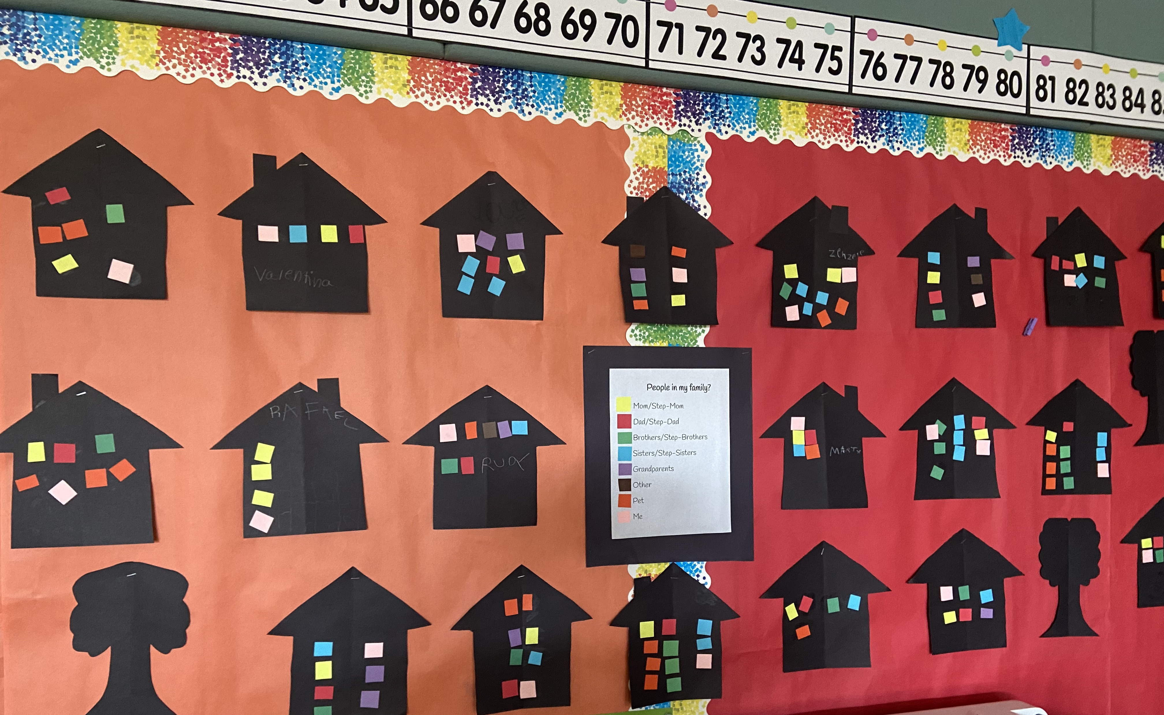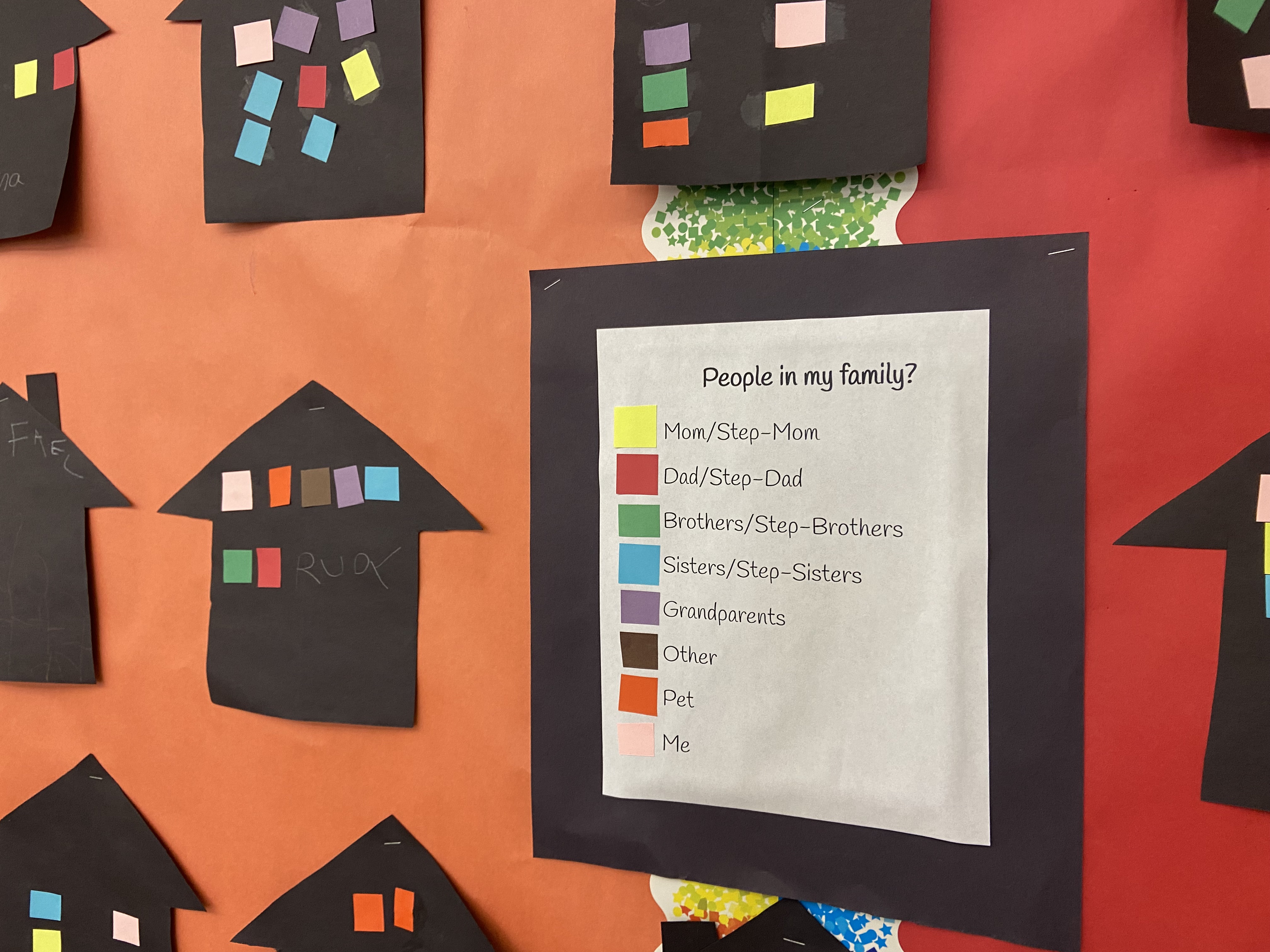 We learned about all kinds of families and what makes our family special. We did the Vin Diagram as a group. We than build our "family" home with all its members and shared with each other. They saw graphically the similarities and differences by comparing the color codes on each house.
