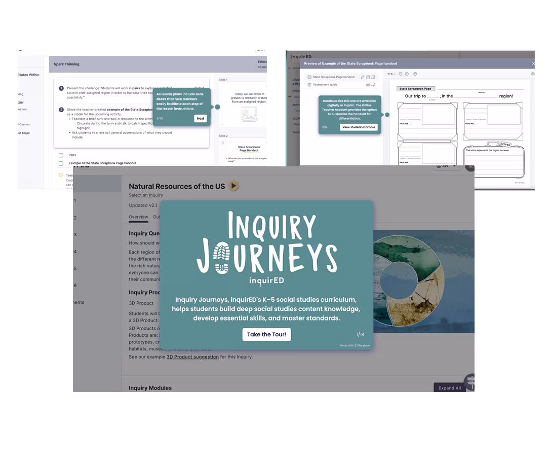 Ready to dive in? Explore a quick walkthrough tour, a short video introduction, and our Inquiry Work Gallery to see Inquiry Journeys in action.